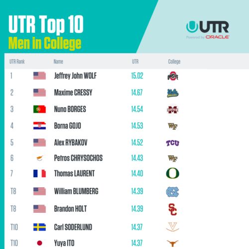 カレッジテニスも佳境に入っていますが、この度、UTRトップ10のカレッジプレーヤーのリストがUTRのサイトで紹介されていました。 男子1位は、以前このブログでも紹介したオハイオ州立大学のジュニア(3回生)、ジェフリー・ジョン・ウルフ(JJ Wolf)。2位以…
